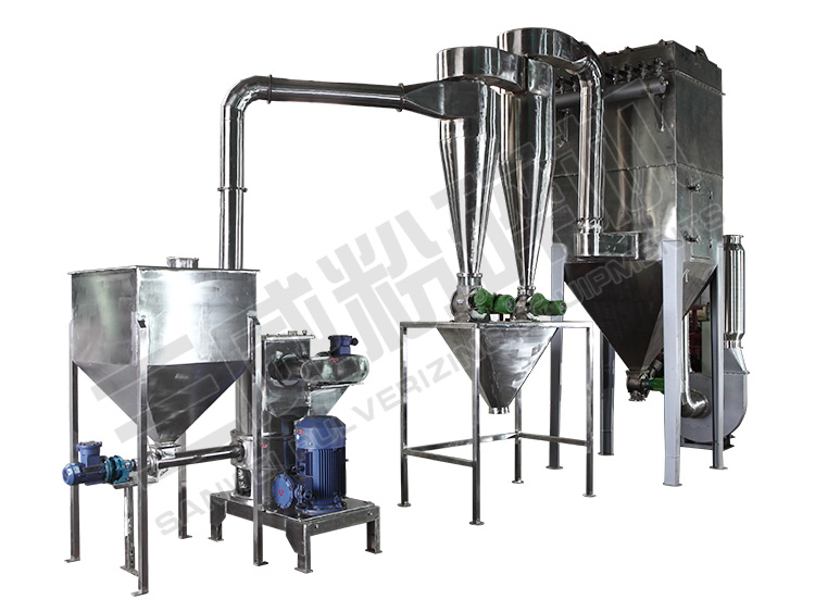 CWJ超微粉碎機(jī):該機(jī)集粉碎與分級(jí)于一體,是一種新型組合設(shè)備,具有設(shè)計(jì)新穎,結(jié)構(gòu)緊湊,檢修方便,能耗低,效率高,粒度均勻等優(yōu)點(diǎn);本機(jī)帶有分級(jí)機(jī)構(gòu),能把分級(jí)和粉碎部分輕松分開,便于檢修和清洗;在不停機(jī)情況下,可任意調(diào)節(jié)粒度,粒度分布面窄,細(xì)度可達(dá)5-8um;易損件采用特殊耐磨材料精制而成。 廣泛適用于醫(yī)藥、化工、飼料、塑料、食品、非金屬礦等行業(yè)的超微粉碎加工的理想設(shè)備。