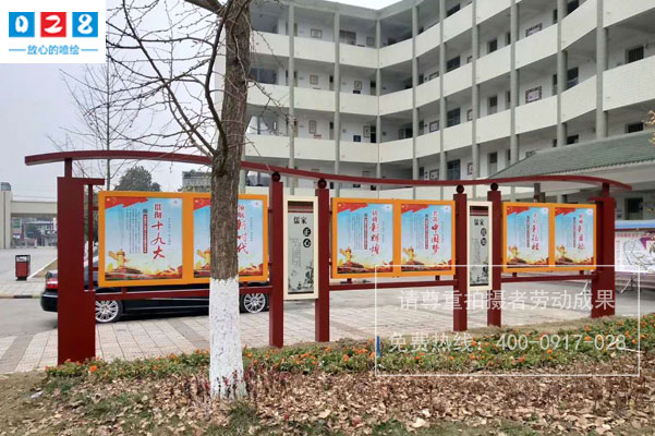 學(xué)校黨建宣傳欄制作   宣傳欄是"精神陣地",在建設(shè)文明、和諧社會(huì)中能發(fā)揮宣傳教育作用。學(xué)生能夠通過這塊"陣地",能掌握政治、經(jīng)濟(jì)、文化教育、科技、保健等多方面信息,有利于豐富同學(xué)們的業(yè)余文化生活,提高學(xué)生的法制觀念、道德境界和文化素質(zhì)。